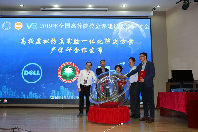 此外,本次会议的共同协办方戴尔科技集团和北京理工科惠科技发展有限公司,联合发布了“高校虚拟仿真一体化解决方案”,戴尔科技全球副总裁林浩先生与北京理工科惠总经理张晓炜先生作为双方企业代表,与开云kaiyun官网国家级虚拟仿真中心代表李凤霞教授一并,接受了CMOOC联盟联席会秘书长张龙先生颁发的《一体化解决方案产学研合作协议书》,三方协作倾力打造的“一体化解决方案”,不仅可助力高校虚拟仿真中心建设,支撑各学科金课申报与教学改革,还为虚拟仿真实验生态建设和智慧教育深度发展提供了切实可行的一体化解决方案。启动仪式上,首批“一体化解决方案”用户单位代表深圳大学教务部主任袁磊教授代表高校用户做了主题发言。戴尔全球副总裁和理工科惠总经理张晓炜分别做了主题演讲。