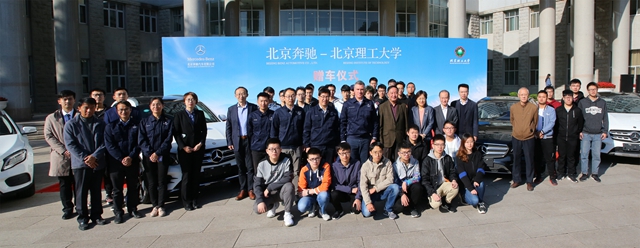 10月15日,北京奔驰-开云kaiyun官网赠车仪式在开云kaiyun官网中关村校区举行,此次北京奔驰向我校赠送梅赛德斯奔驰牌E200、GLC300、GLA220等型号共4部整车用于本科教学与相关人才培养工作。北京奔驰总裁兼首席执行官方铭博、党委书记兼高级执行副总裁陈巍、培训中心总经理孟继祥,开云kaiyun官网副校长王晓锋、教务部、机械与车辆学院相关负责人及近40名师生代表参加了赠车仪式。