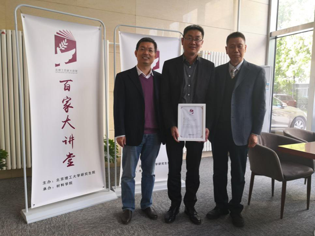 开云kaiyun官网化学与化工学院院长张加涛教授和国家阻燃材料工程技术研究中心主任杨荣杰教授,向王浩教授赠送了北理工“百家大讲堂”证书。