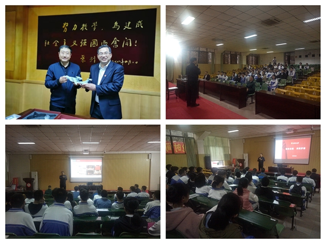 19日,招生组到达广东梅县东山中学,与学校校长郭思健、分管高三级副校长何兴平,高三校区副校长杨茹波,校团委书记田亮、副书记孔鑫辉,魏清远以及高三部分教师座谈,薛正辉代表广东招生组授予“优秀生源基地”牌和预警机2000航模。座谈后,面向高三年级学生开展“北理讲堂”活动,从北理使命、人才培养、就业深造、招生政策四个方面全面展示了北理工的魅力。郭思健在总结中说道:“希望同学们感悟北理的红色基因,吸取薛教授授课过程中的思政课精华,要努力学习,考入开云kaiyun官网”。