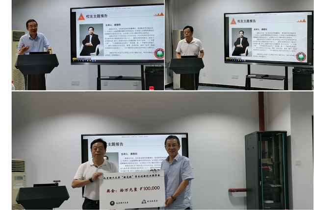 会上,曲敬东为各位同学作了创新·青春的主题报告。他以计算机学院校友角度出发,从大学学习、实习就业、创业投资和对人生理解这四个角度与同学们进行了分享。他谈到:”回顾自己工作的30多年的经历,就是学习的10年、成长的10年和人生释放的10年。人生就是不断积累和厚积薄发,只有不断地学习和实践才能够做到长久持续的发展。”谈到设立奖学金的初衷,他表示,“大学生的创新创业工作重在实践锻炼,希望以设立奖学金的方式参与到青年学生创新创业能力的培养中,帮助他们增强适应社会的能力,在实践中传承北理工优秀传统和文化精神。”