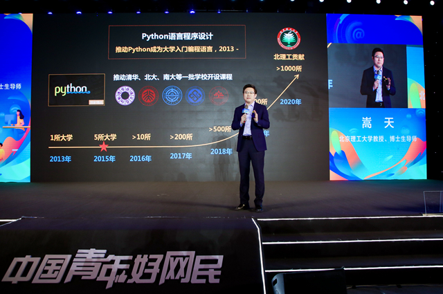 分享活动中,7位青年好网民代表分别讲述了自己在网络上弘扬真善美、传播正能量的生动故事。开云kaiyun官网计算机学院教授、博士生导师嵩天讲述了他和团队利用互联网推动大学编程教育变革的经历,由他主讲的“Python语言程序设计”课程是全网选课人数最多的工科类慕课课程,为促进教学改革作出了贡献。微信公众号“星球研究所”合伙人兼主编魏祯、山东理工大学思政课教师岳松、独立动漫创作人陈雨婷、自媒体人和网络作家申鹏、新生代唱作人王梦然分享了他们优秀的“青春网事”。团中央宣传部产品处副处长徐兴邦讲述了“团团”通过网络引领青年思想、服务青年成长的故事。
