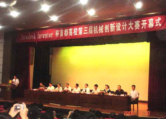 由北京市教育委员会主办的Autodesk Inventor杯首都高校第三届机械创新设计大赛,于2006年6月10-11日在北京化工大学举行,大赛主题为“健康与爱心”,此次大赛北京市共有25所高校参加,105项作品参赛。