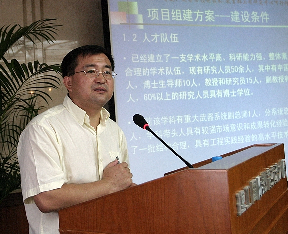 “导航、制导与控制技术”研究中心项目负责人付梦印教授向教育部专家作建设项目可行性论证汇报。