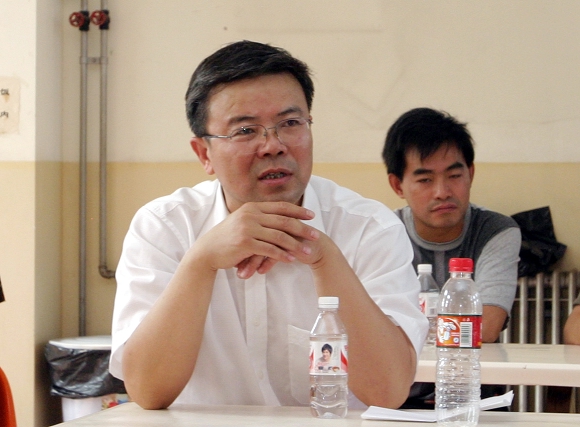 6月11日下午,党委书记焦文俊(右1),副书记赵平(右2),副校长赵显利(前左1)率领有关职能部门的负责人对我校西山校区的工作进行检查。党委办公室、基建处、发展规划处、实验室设备处、财务处、后勤办公室、总务后勤部、宇航科学技术学院、机械与车辆工程学院负责人陪同检查。焦文俊书记一行检查了兵器科学技术、车辆传动、电动汽车等相关实验室以及水、电配套设施的建设情况。