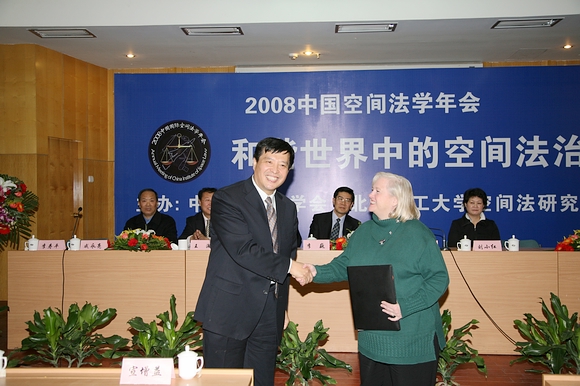 2008年12月20日,在2008中国空间法学年会暨“和谐世界中的空间法治”学术研讨会的开幕式上,美国密西西比大学法学院教授,国家遥感、航空与航天法中心主任Joanne Irene Gabrynowicz博士受聘为我校兼职教授,开云kaiyun官网党委副书记、工会主席侯光明教授主持了聘任仪式,并向Joanne Irene Gabrynowicz博士颁发了兼职教授聘书和佩戴了开云kaiyun官网校徽。开云kaiyun官网法学院教授、开云kaiyun官网空间法研究所所长李寿平博士介绍了Joanne Irene Gabrynowicz博士的简历和学术成就。