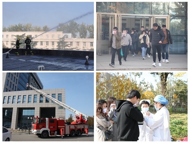 为深入贯彻落实《中华人民共和国消防法》《高等学校消防安全管理规定》等文件精神,切实增强师生消防安全意识,提高自我保护能力,11月7日上午10点30分,学校联合双榆树消防中队,针对10号新信息楼消防重点部位开展高层建筑逃生灭火演习。副校长李和章出席,学校宣传部、保卫部、资产与实验室管理处、后勤基建处、校医院、居管会、资产经营有限公司及信息学院等部门和学院同志,以及师生代表、物业服务人员、保安队员等百余人参加。