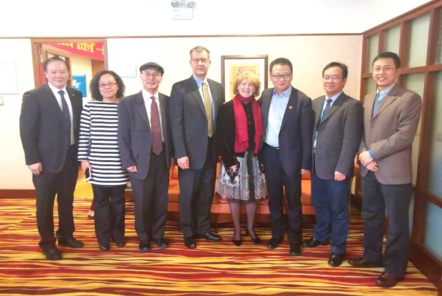 在萨斯喀彻温大学孔子学院理事会第十次会议上,中加方理事及代表审议了萨斯喀彻温大学孔院2019年工作汇报。王博感谢萨斯喀彻温大学科研副校长Karen Chad对孔院工作的长期支持,并祝贺她获得“2019全球孔子学院先进个人奖”。两方与会代表还就示范孔院建设进行协商。