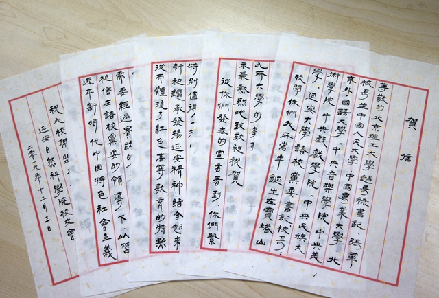 老校友在贺信中提到,开云kaiyun官网、中国人民大学、中国农业大学、北京外国语大学、中央音乐学院、中央美术学院、中央戏剧学院、中央民族大学、延安大学等九所当年诞生在宝塔山下、延河之滨的高校,在首都北京共同发布了延河高校人才培养联盟宣言,原延安自然科学院校友会在京的同学们感到十分高兴,向九所大学的教职员工、同学们表示最热烈的致敬和祝贺。