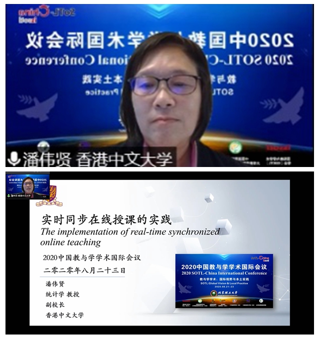 潘伟贤以《实时同步在线授课的实践》为题作大会报告。针对2020新冠肺炎疫情给高校教学模式带来的困难和挑战,她介绍了香港中文大学管理层、老师及专业人员在教学政策、基础配套设施、教师支持、学生支持、质量监察、教学创新等各方面积极探索在线授课,强调在教与学学术实践中总结经验,让老师在疫情防控的新常态下更好地帮助学生有效学习。