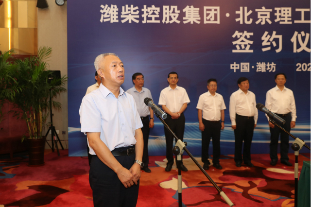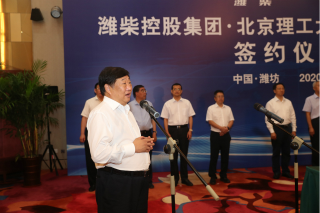 凌文代表山东省政府对协议的签署表示热烈祝贺。他表示,北理工与潍柴集团是强强联合,双方要服务于国家重大战略和经济社会发展。他强调,政产学研各界应凝聚共识,为实现两个一百年奋斗目标而携手共同努力,在建设制造强国方面做出应有贡献。